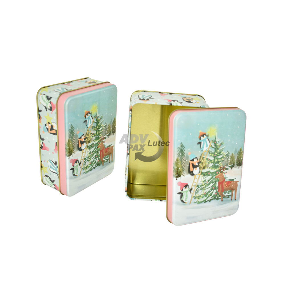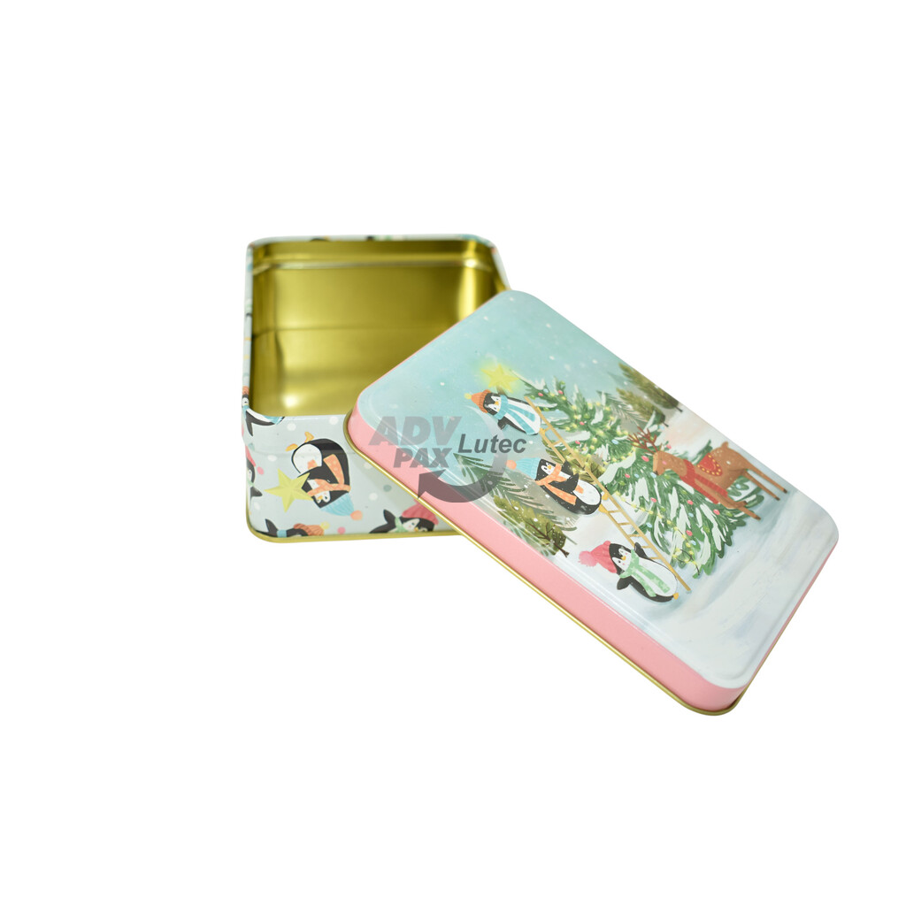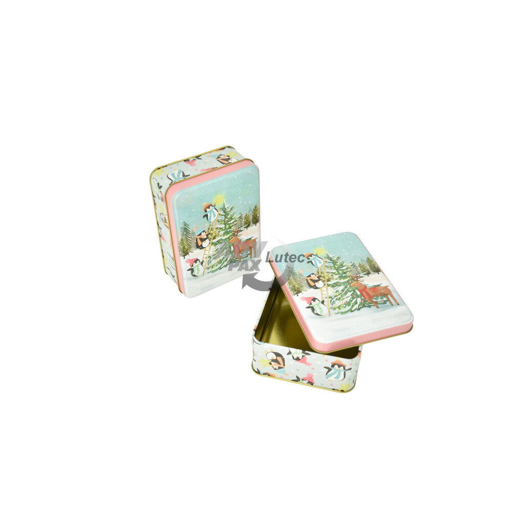 Rechteckige Stülpdeckeldose aus elektrolytischem Weißblech, bedruckt
