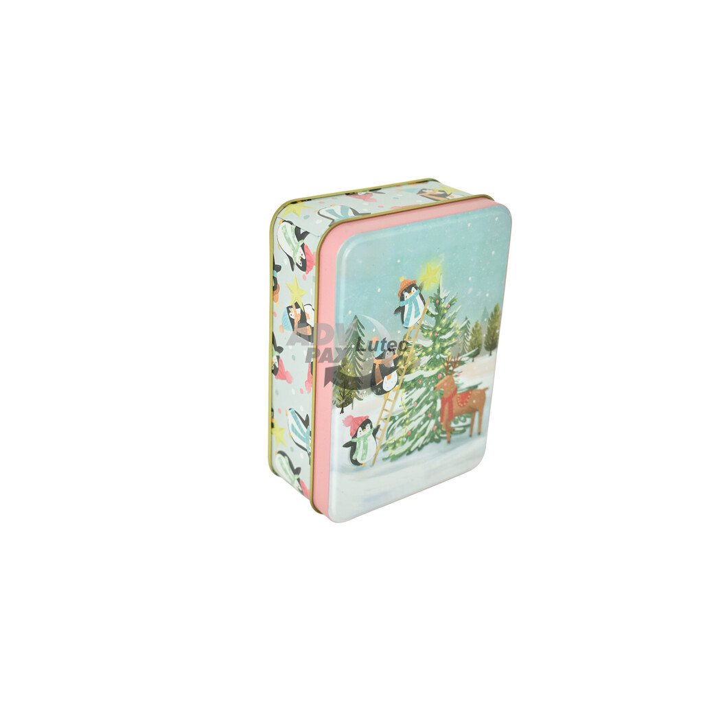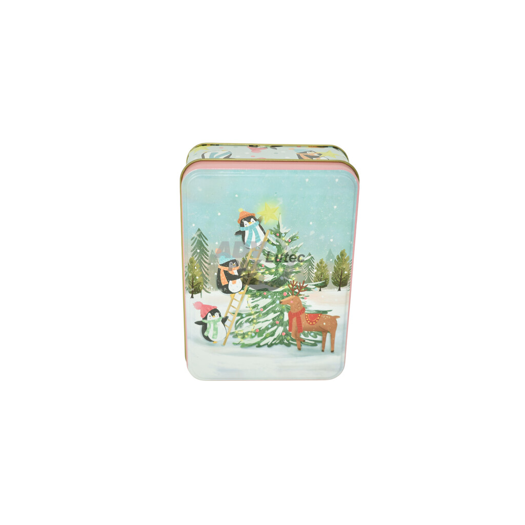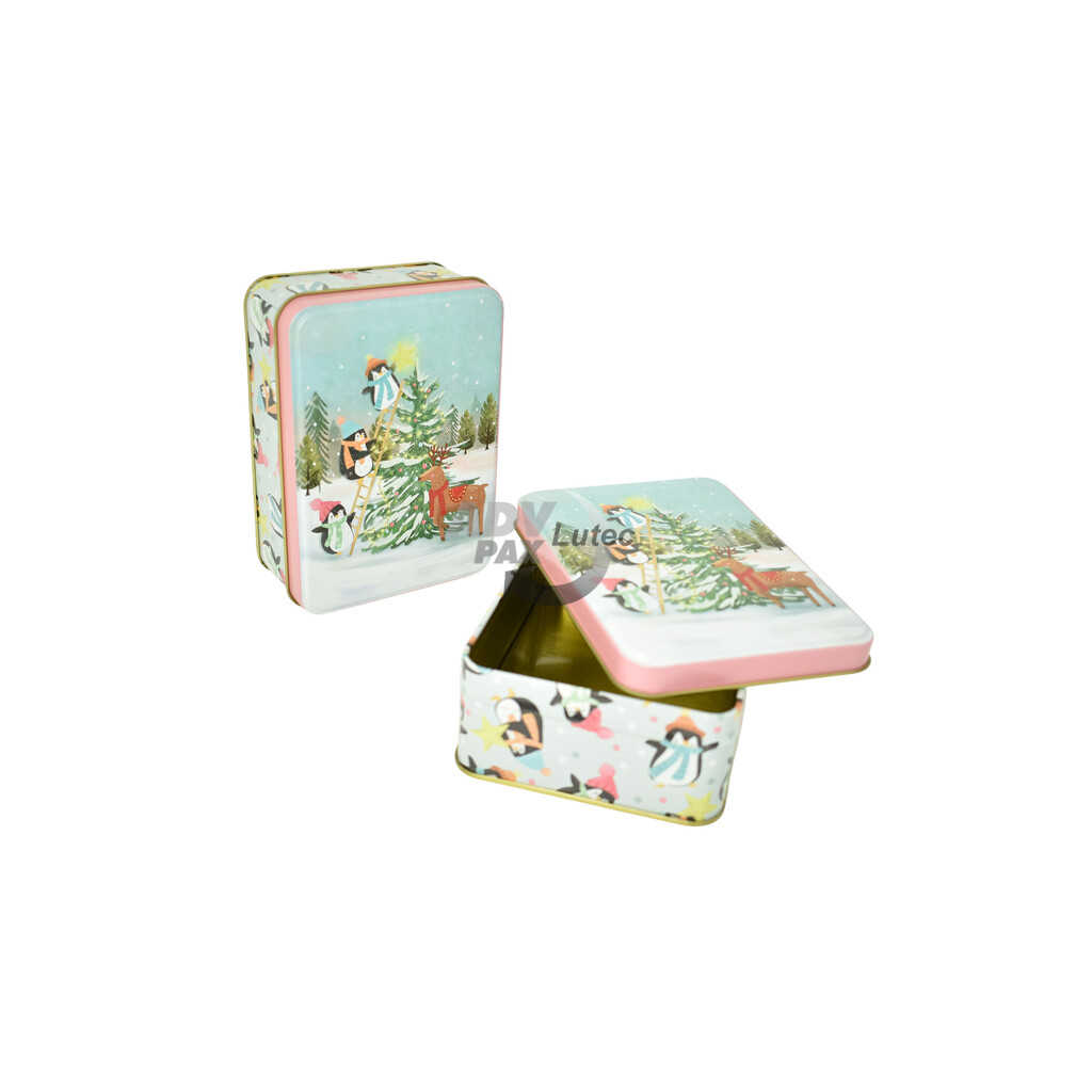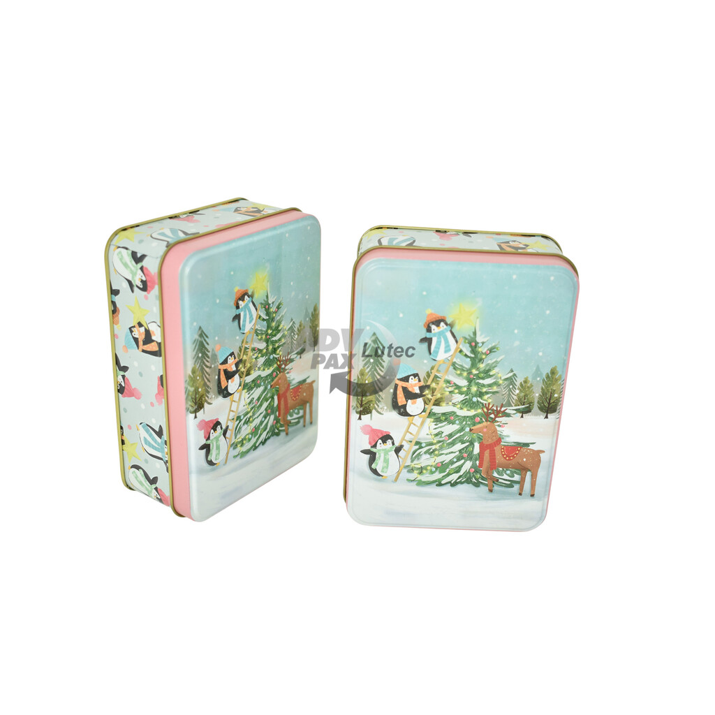 Rechteckige Stülpdeckeldose aus elektrolytischem Weißblech, bedruckt