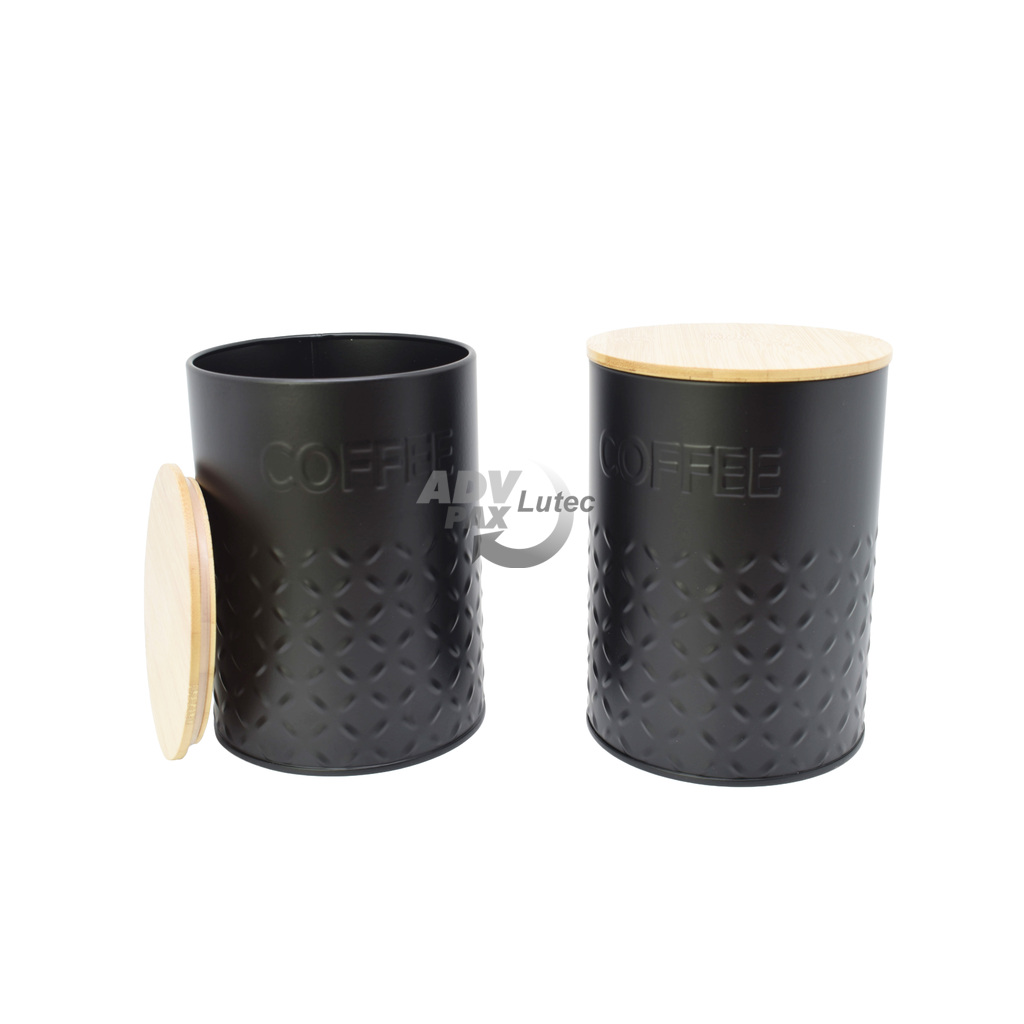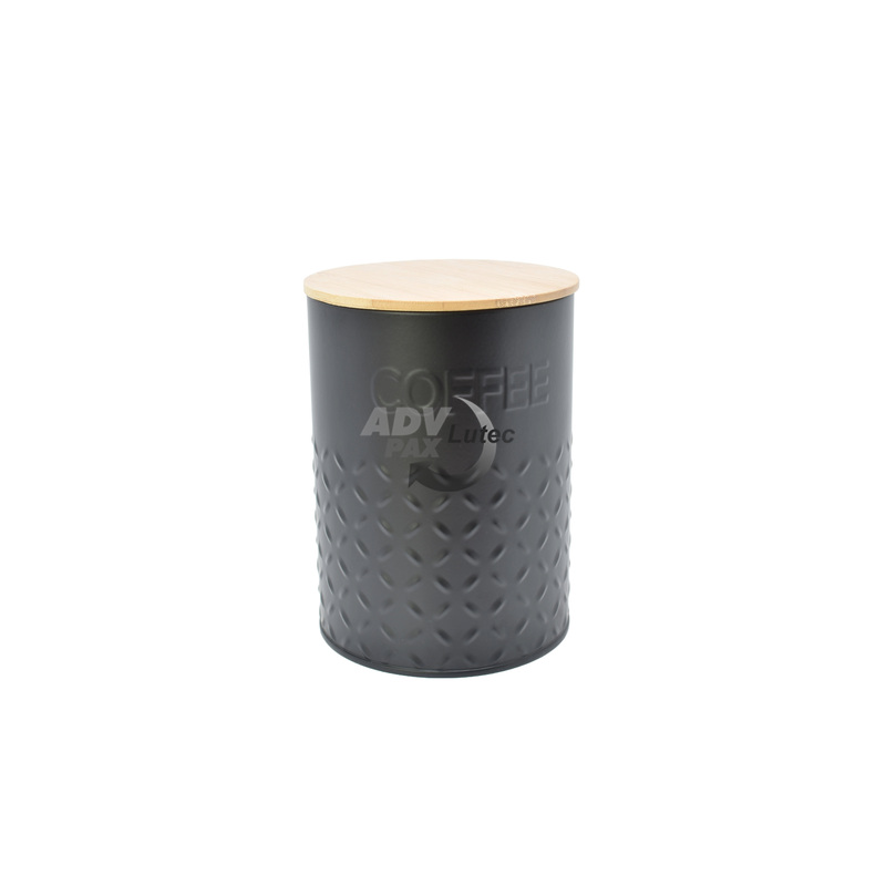 Runde Stülpdeckeldose aus pulverbeschichtetem Stahl; Deckel aus Bambus mit Silicondichtring