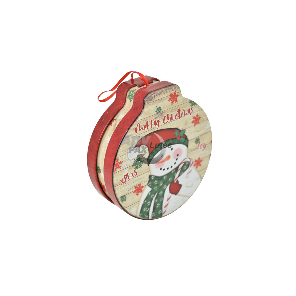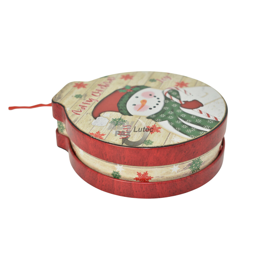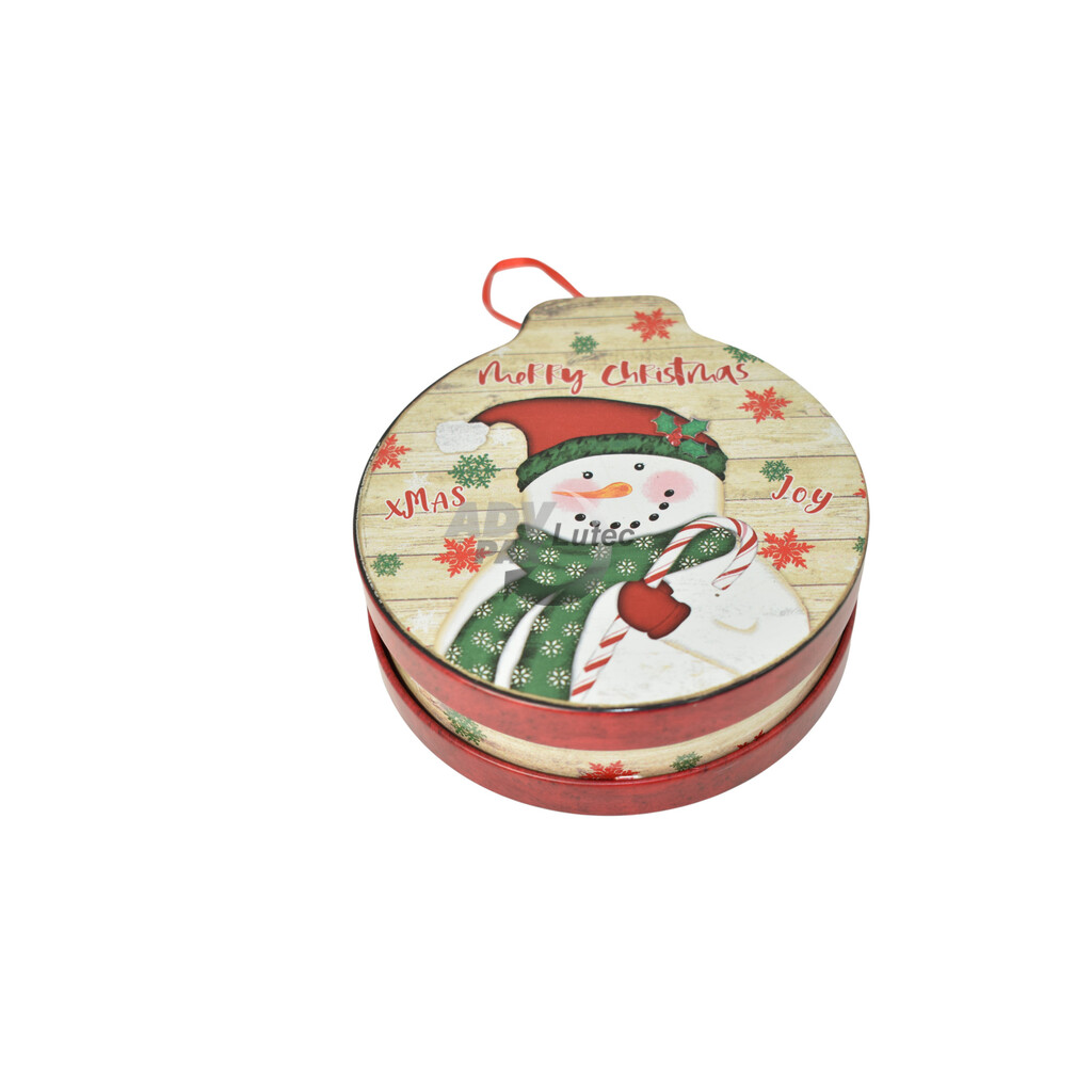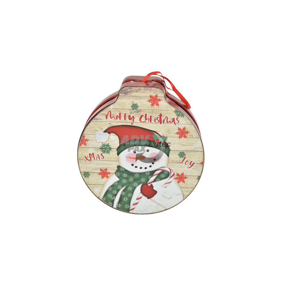 Sonderform Scharnierdeckeldose als flache Kugel aus elektrolytischem Weißblech; bedruckt