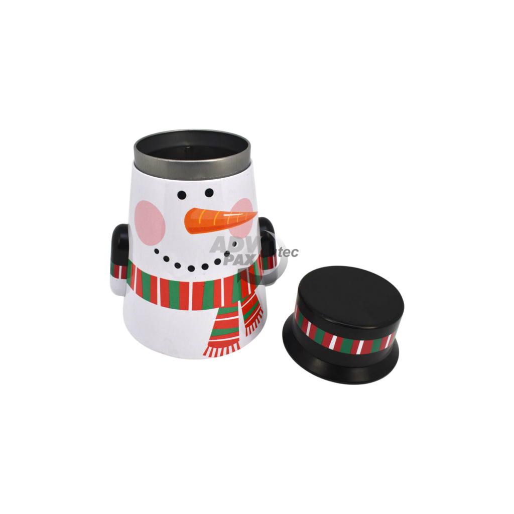 Sonderform Snowman; Stülpdeckeldose aus elektrolytischem Weißblech; bedruckt