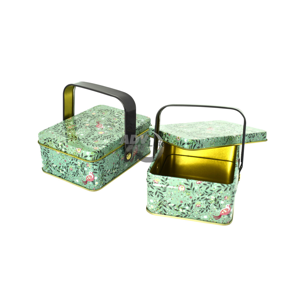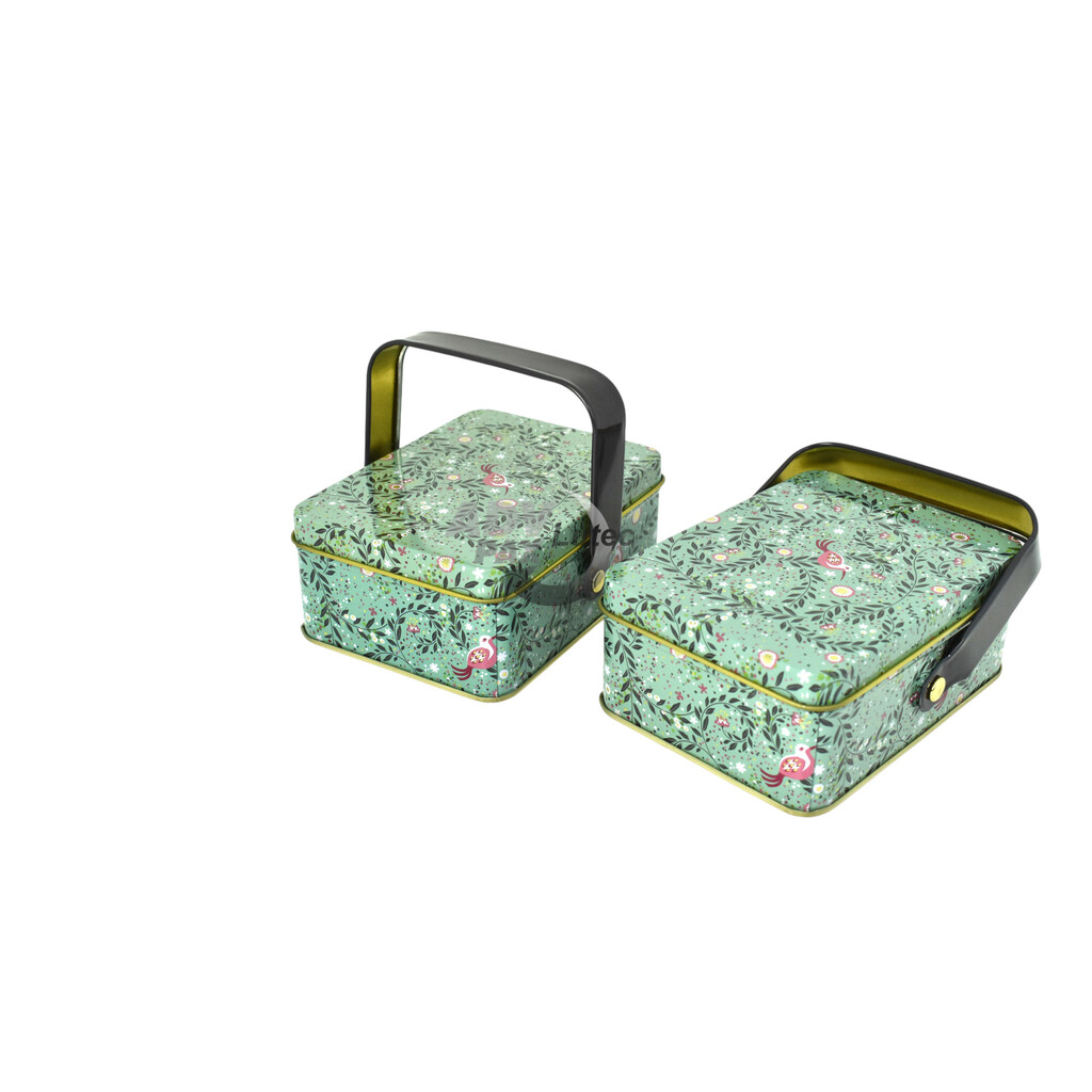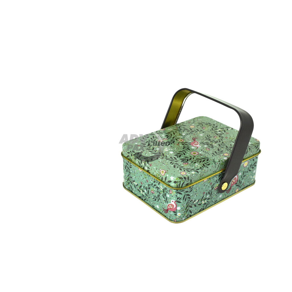 Sonderform Korb; Rechteckige Stülpdeckeldose mit Henkel aus elektrolytischem Weißblech