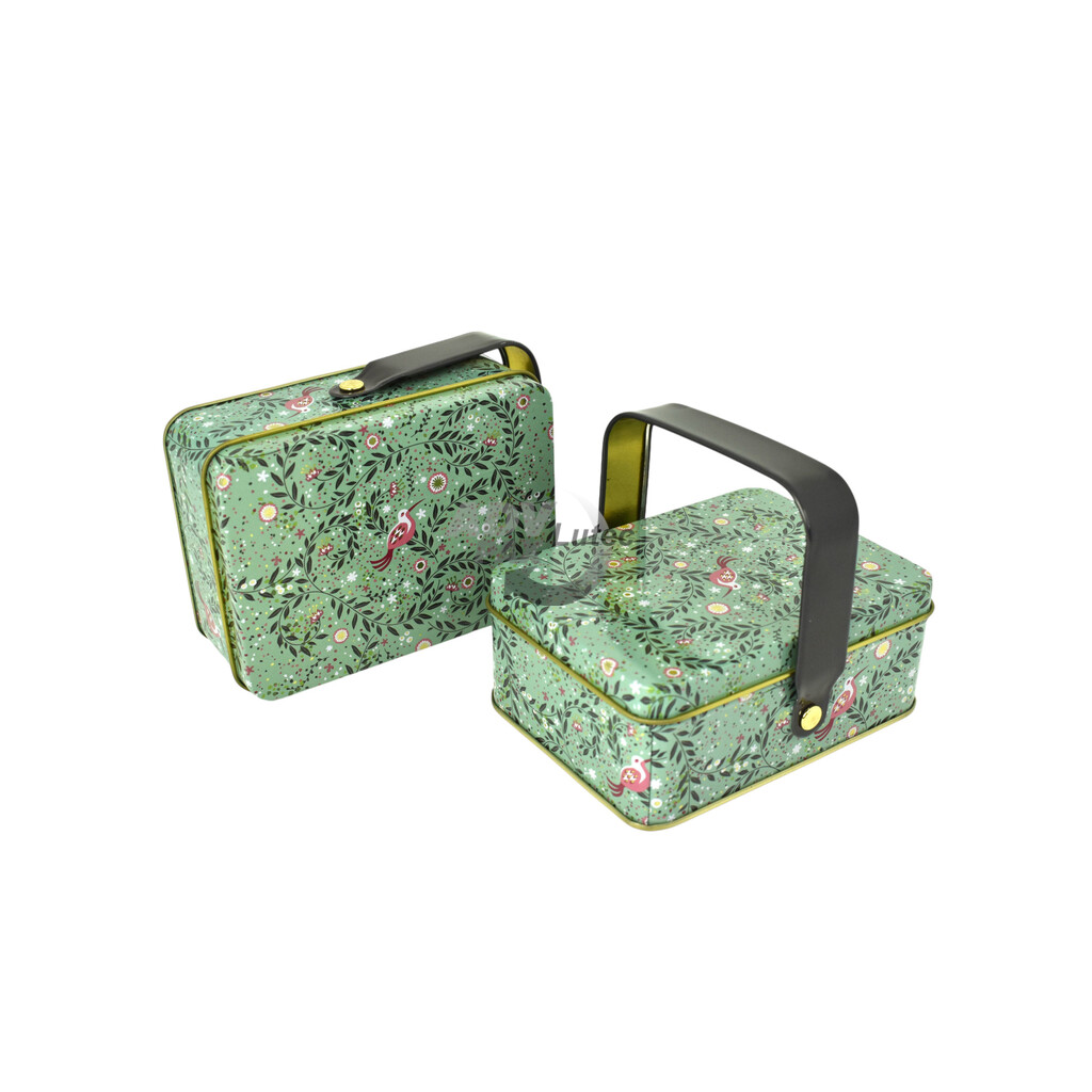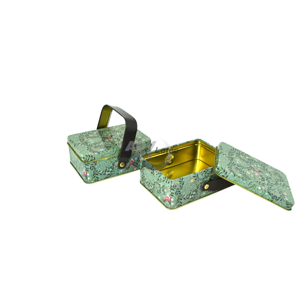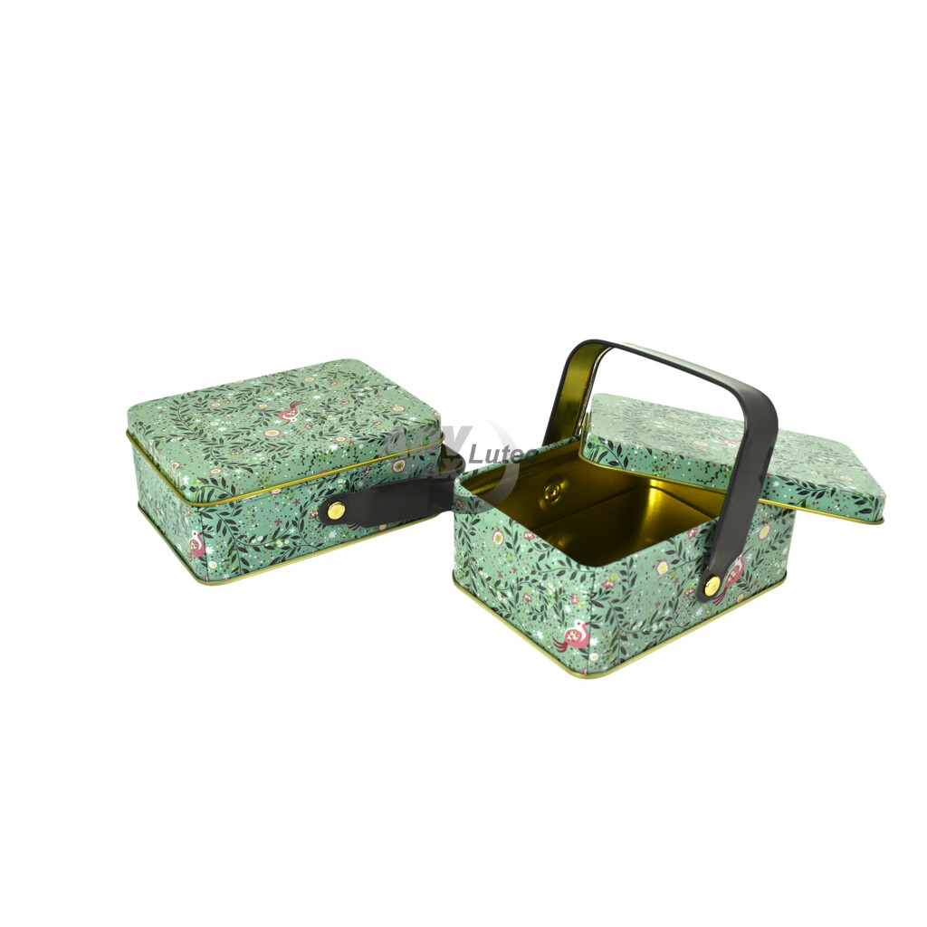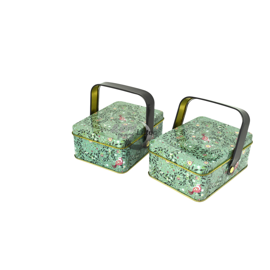 Sonderform Korb; Rechteckige Stülpdeckeldose mit Henkel aus elektrolytischem Weißblech