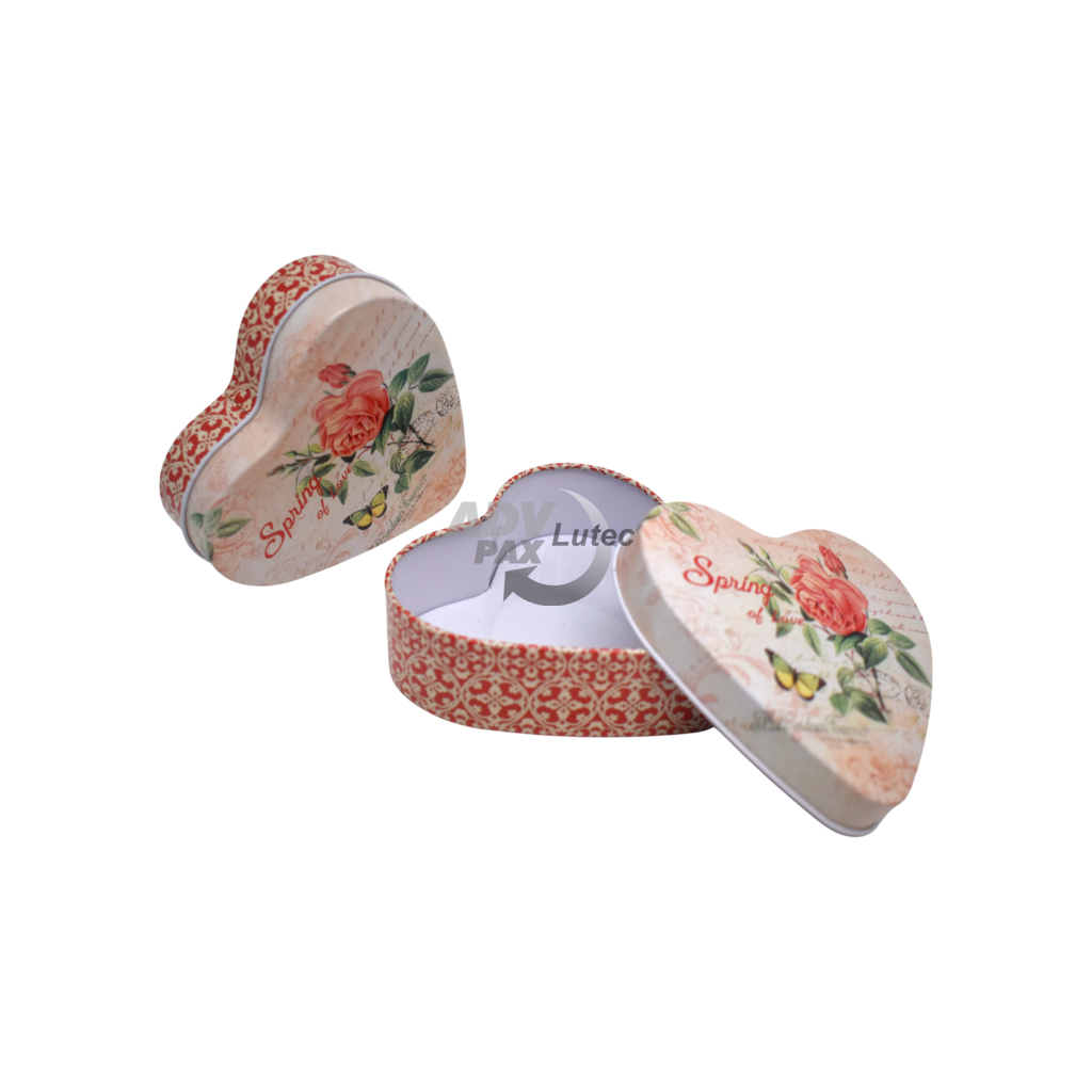 Sonderform Herz Stülpdeckeldose aus elektrolytischem Weißblech, bedruckt