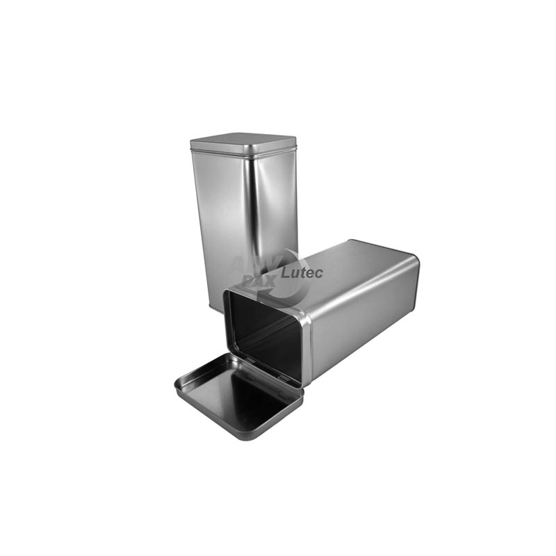 Rechteckige Scharnierdeckeldose aus elektrolytischem Weißblech; blank
