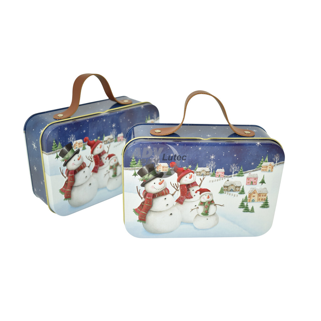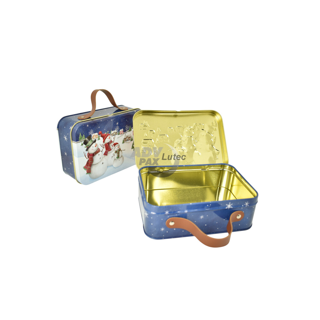 Scharnierdeckeldose/Koffer aus elektrolytischem Weißblech; bedruckt