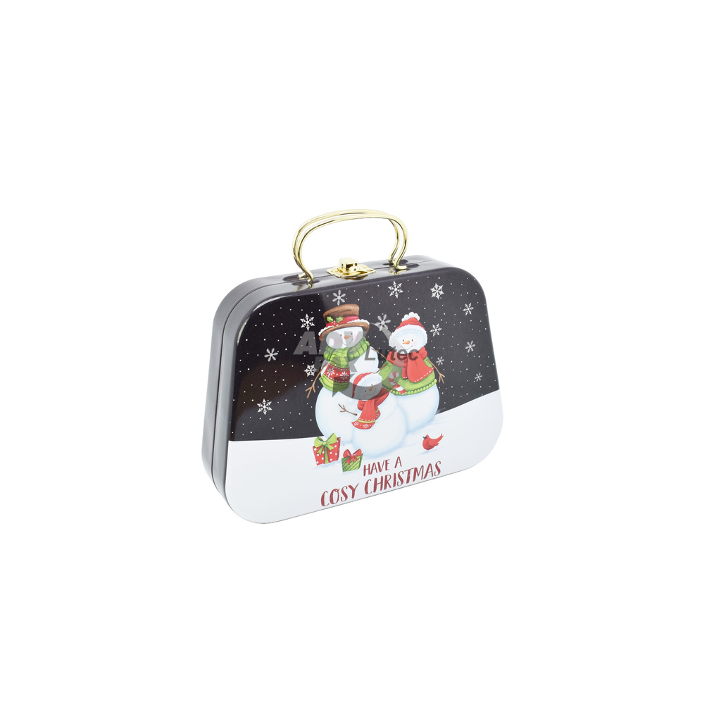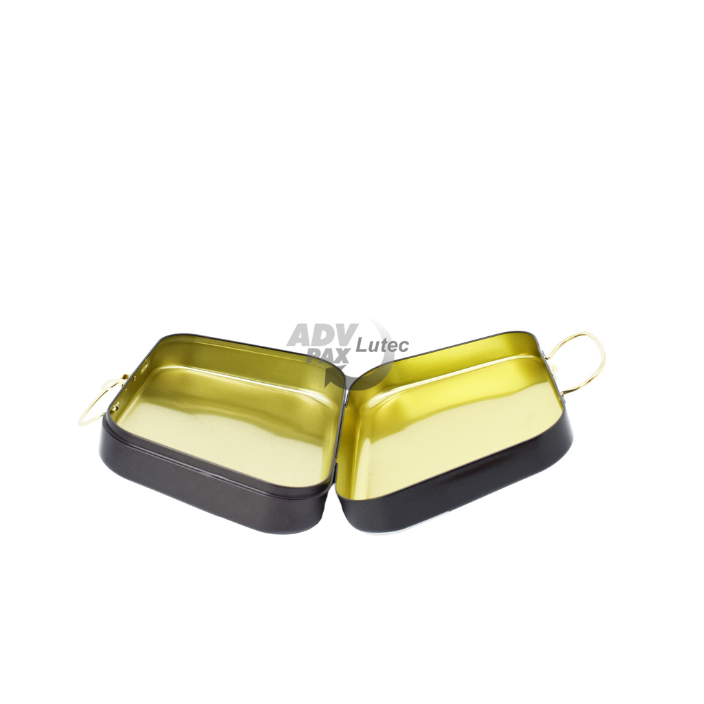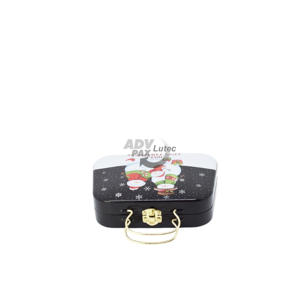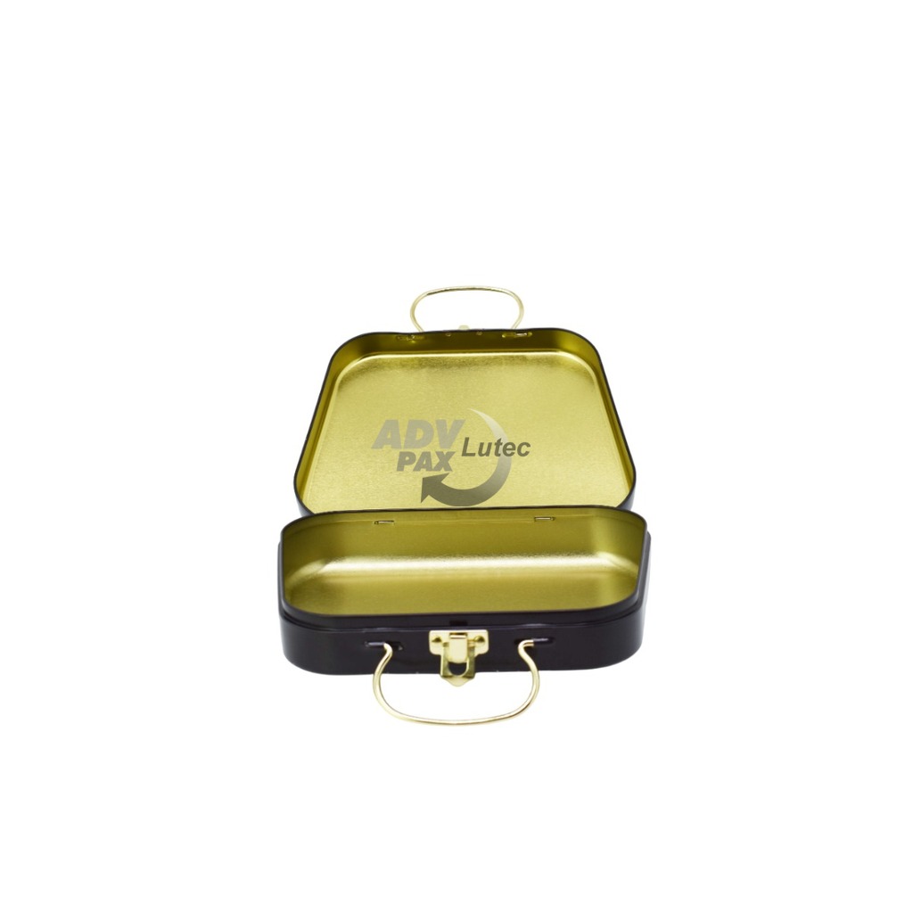 Scharnierdeckeldose / Koffer aus elektrolytischem Weißblech; bedruckt