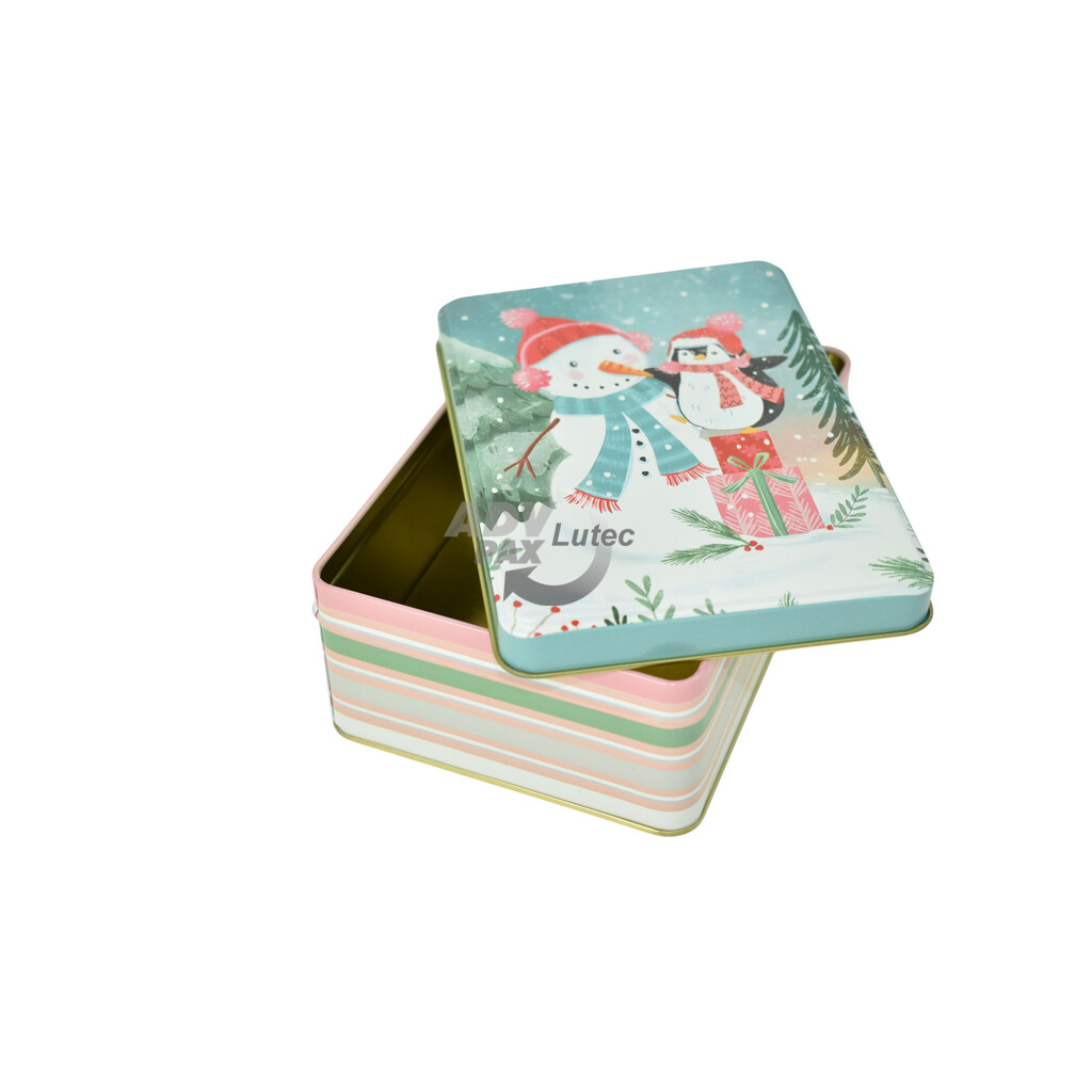 Rechteckige Stülpdeckeldose aus elektrolytischem Weißblech, bedruckt