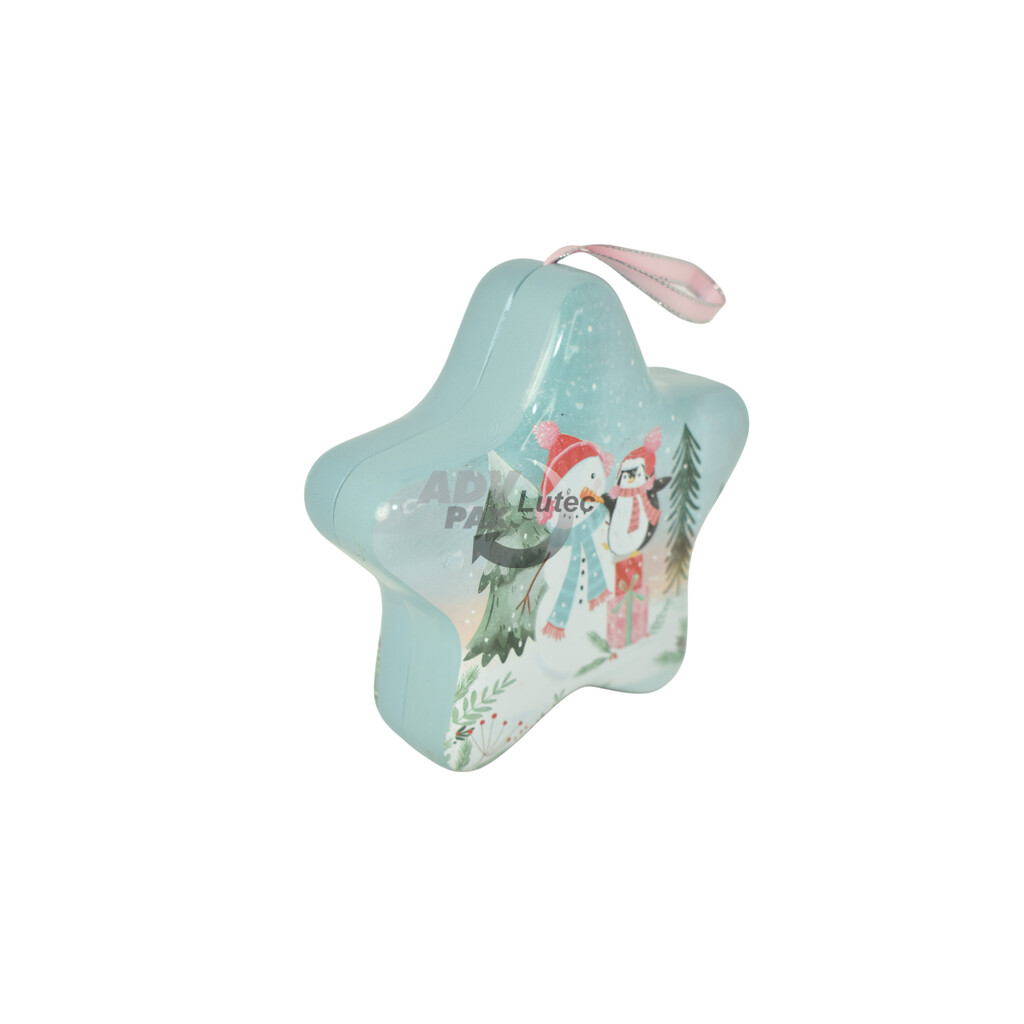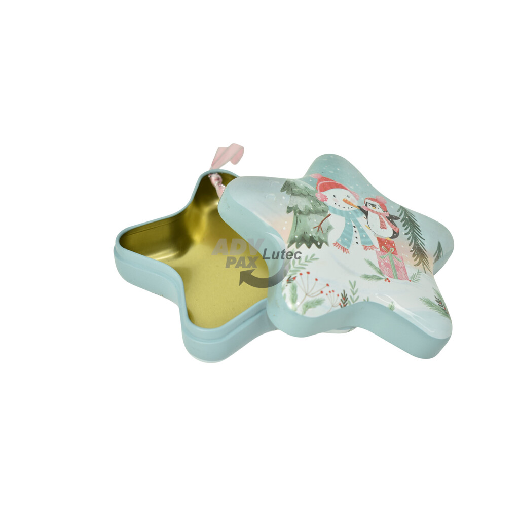 Sonderform Stern Stülpdeckeldose aus elektrolytischem Weißblech; bedruckt
