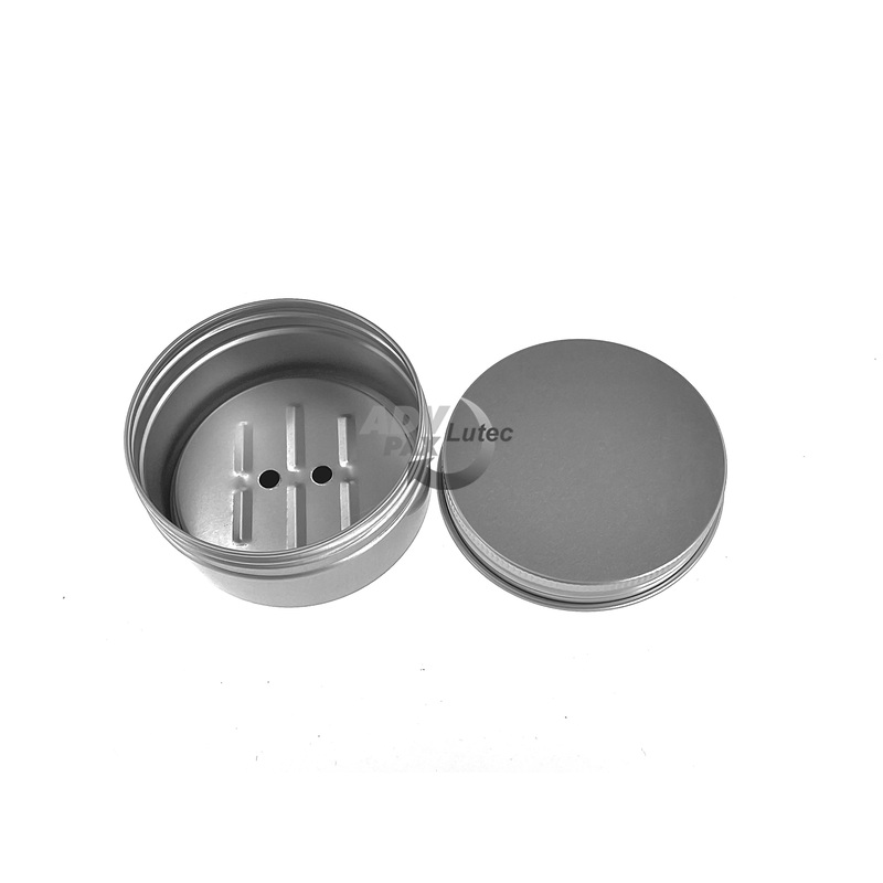 Runde Schraubdeckeldose aus Aluminium mit Abtropfschale; mit Compound; Abmessung: Ø 66/36 mm; blank