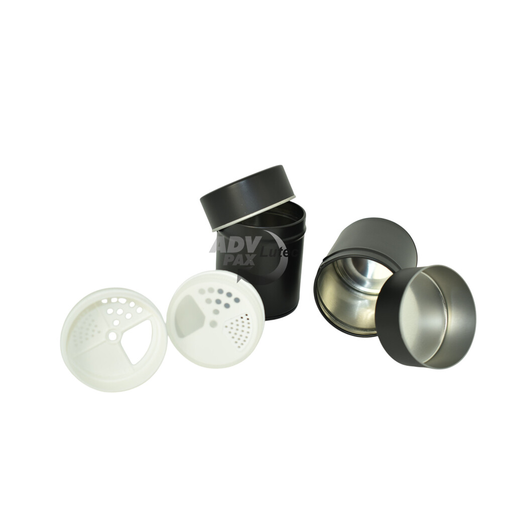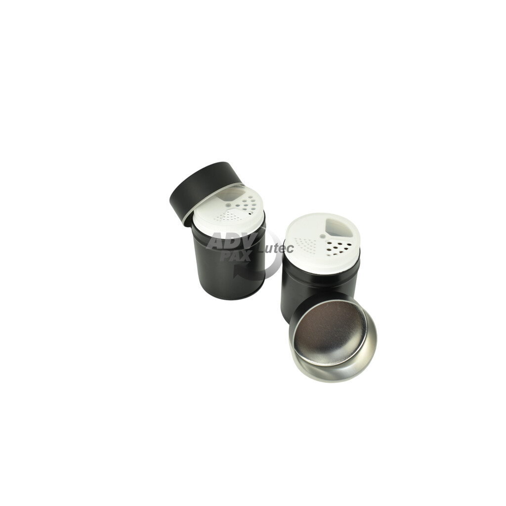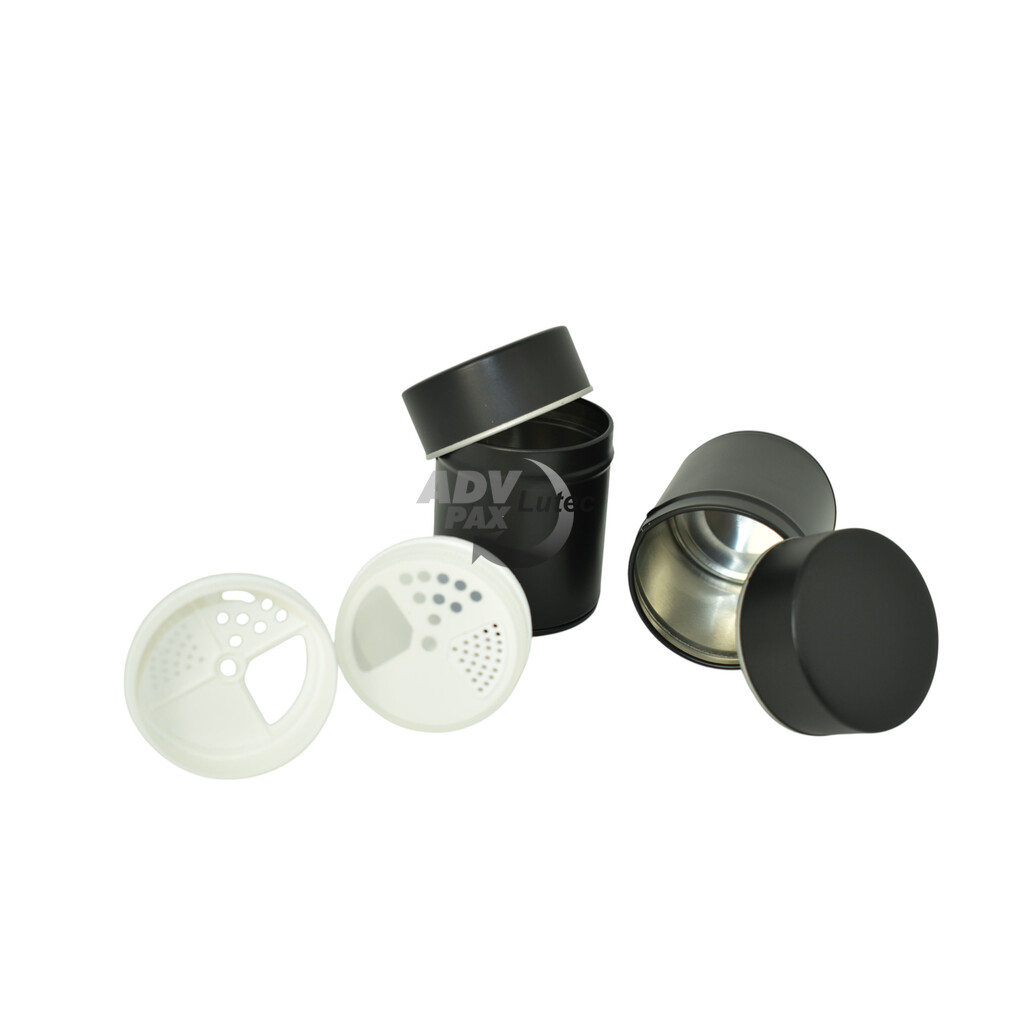Runde Stülpdeckeldose aus elektrolytischem Weißblech; mit Kunststoffeinsatz; bedruckt