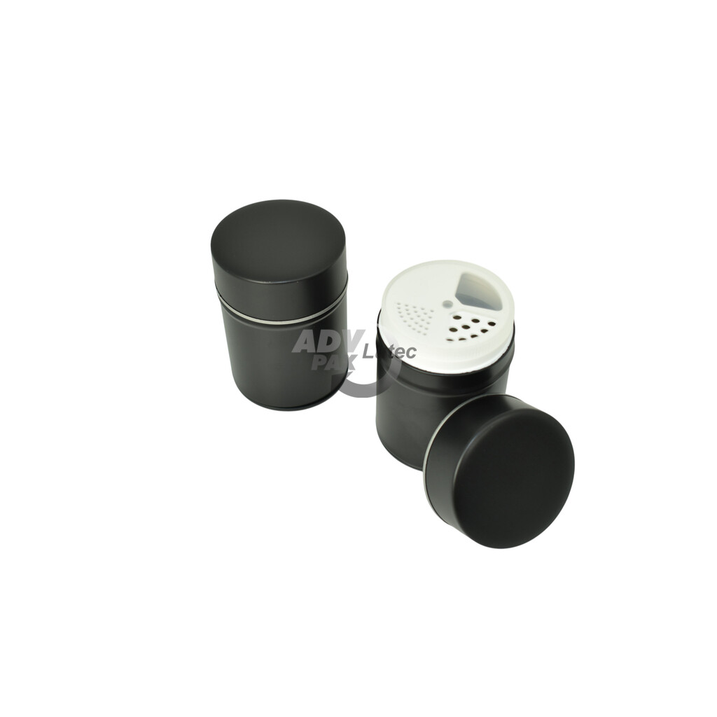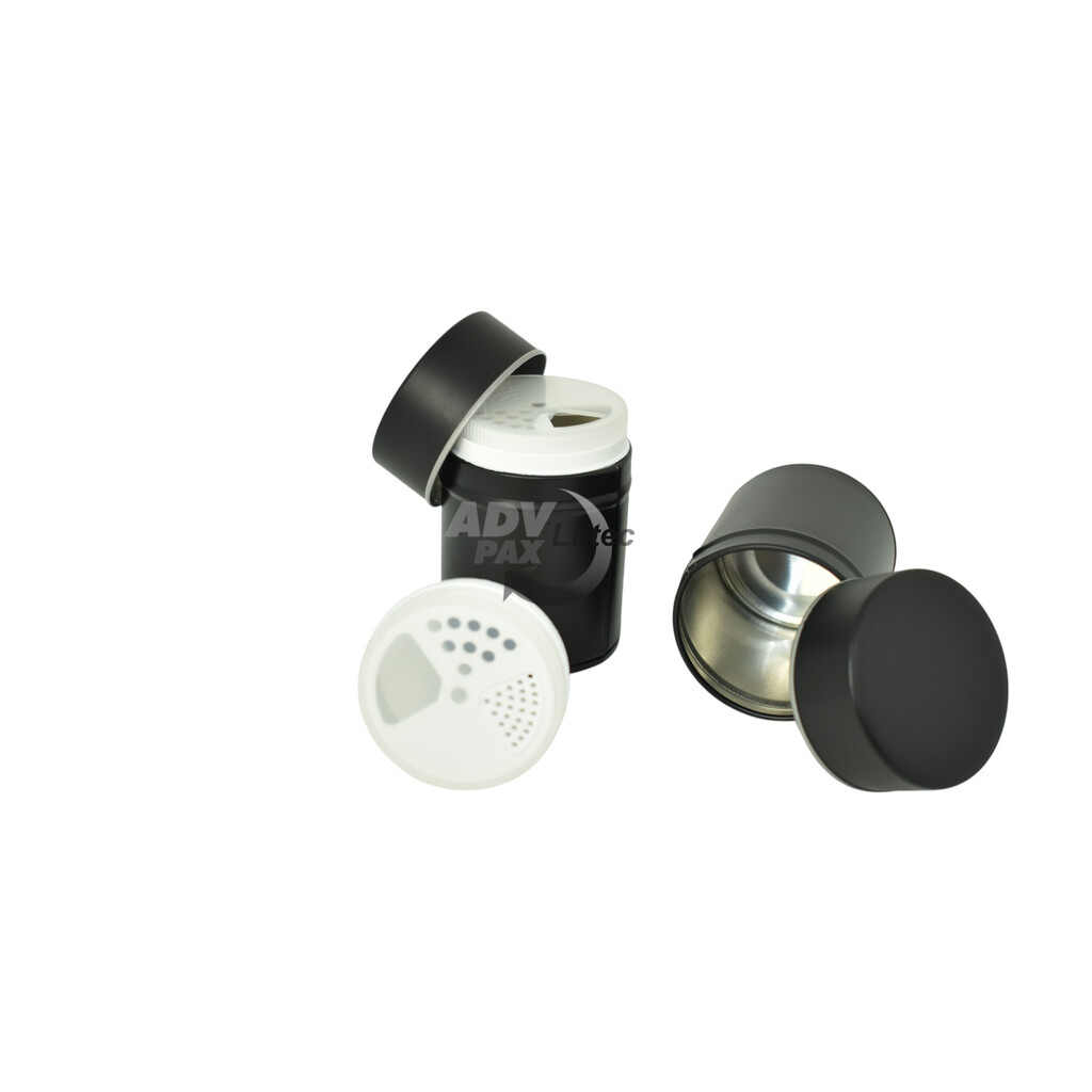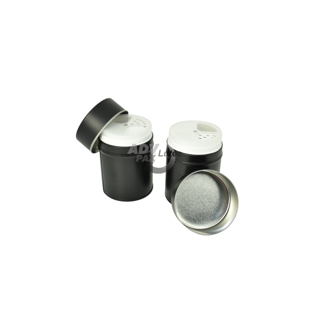 Runde Stülpdeckeldose aus elektrolytischem Weißblech; mit Kunststoffeinsatz; bedruckt