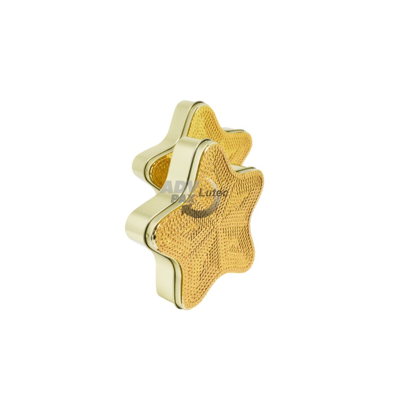 Sonderform Sterndose; Stülpdeckeldose aus elektrolytischem Weißblech; bedruckt + Pailletten