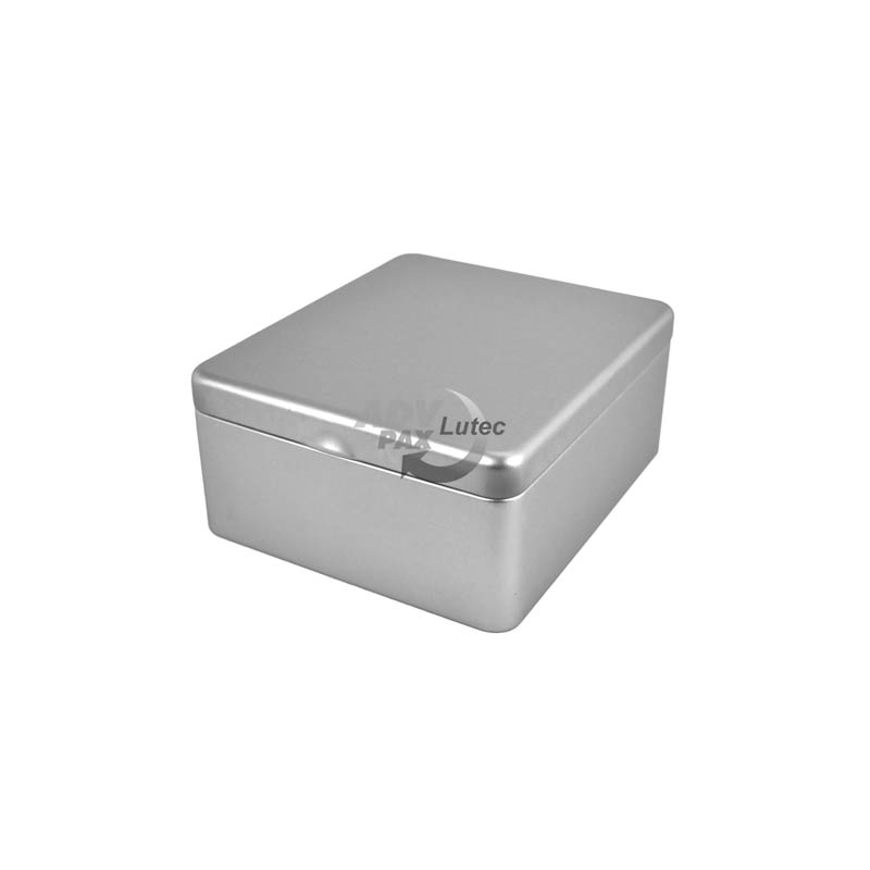 Rectangular hinge lid tin with 4 dividing fields from electrolytic tinplate; blank
