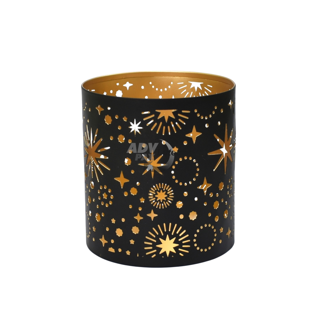 Windlicht aus Metall; mit ausgestanztem Motiv; beschichtet