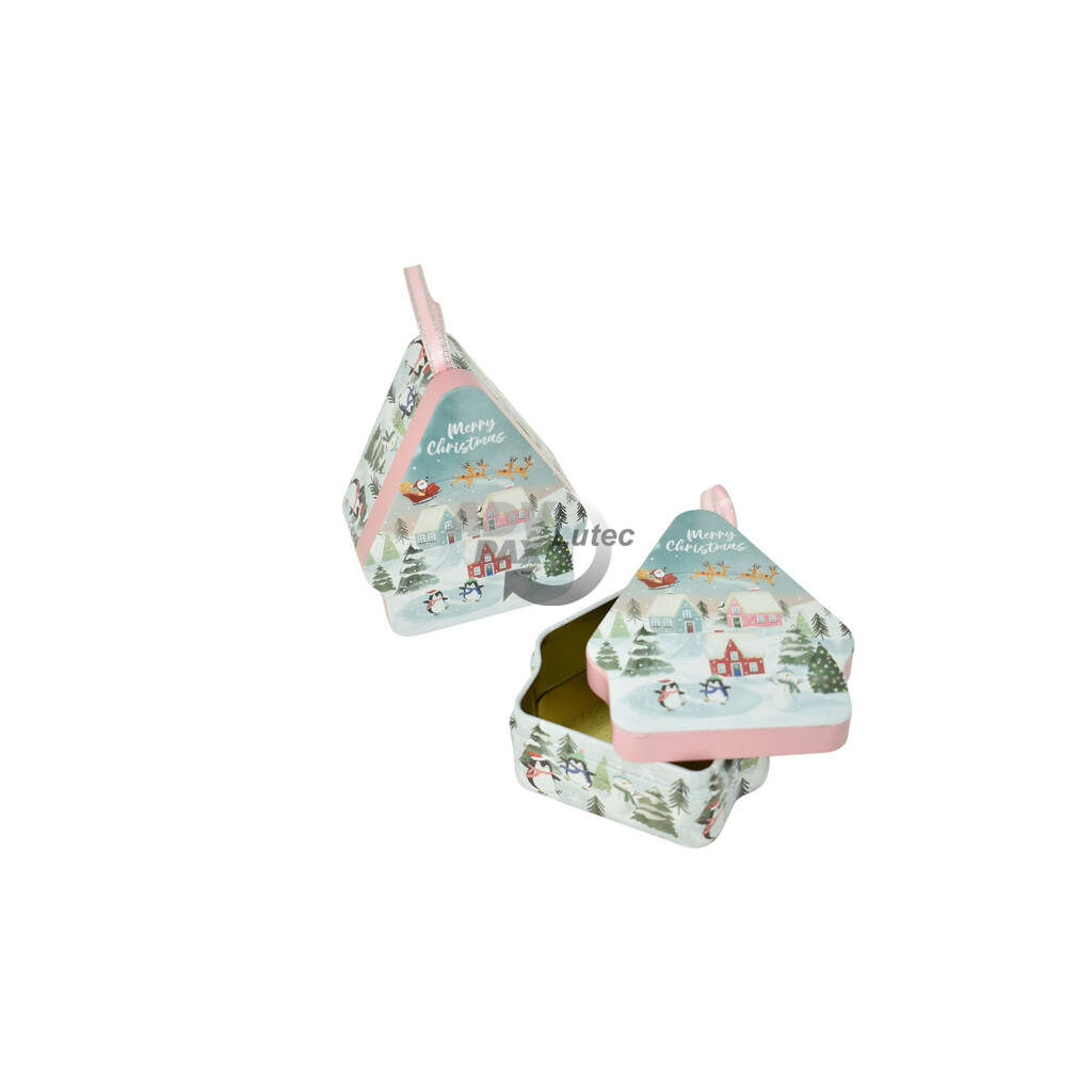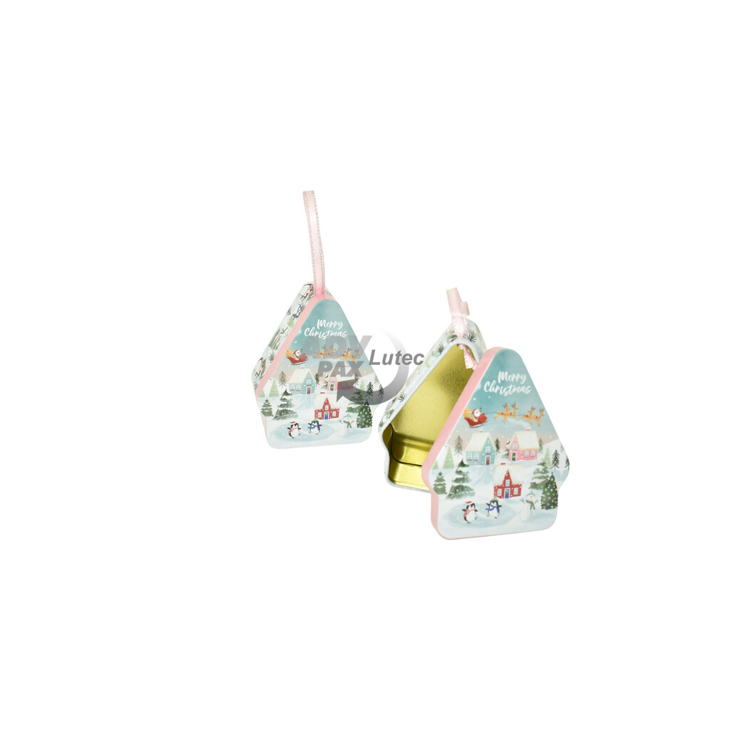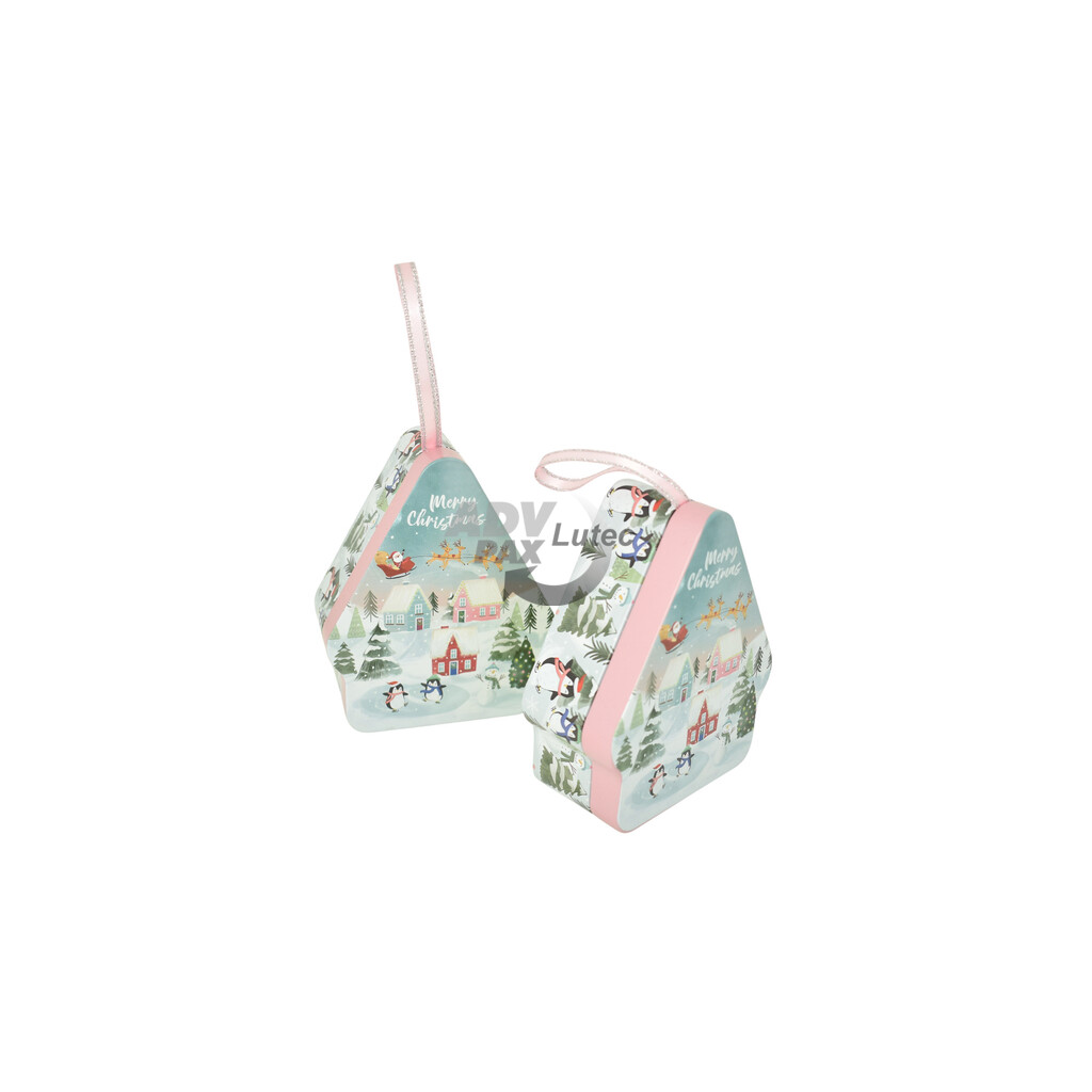 Haus Winter Schnee Dose Geschenk Weihnachten Aufhänger Dose aus elektrolytischem Weißblech Village House Merry Christmas