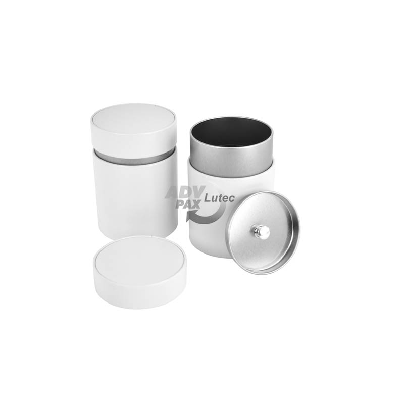 Runde Stülpdeckeldose mit Innendeckel aus elektrolytischem Weißblech; weiß